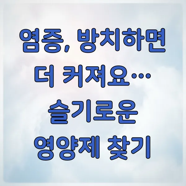- 주요 영양제: 오메가-3, 커큐민, 비타민 D, 프로바이오틱스가 염증 관리에 도움을 줄 수 있습니다.